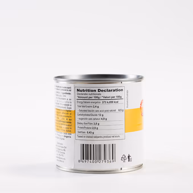 Porumbul dulce TULLIA este alegerea ideală pentru cei care apreciază gustul autentic și prospețimea la fiecare masă. Ambalat în cutie metalică de 425 ml, cu o masă totală de 340g și o masă scursă de 285g, acest porumb este potrivit pentru salate, garnituri, supe sau rețete rapide. Ambalajul practic și dimensiunea optimă îl fac perfect pentru orice gospodărie. Produsul are garanție extinsă de 24 luni și este recomandat pentru rafturile de retail, oferind un raport excelent între calitate și preț.